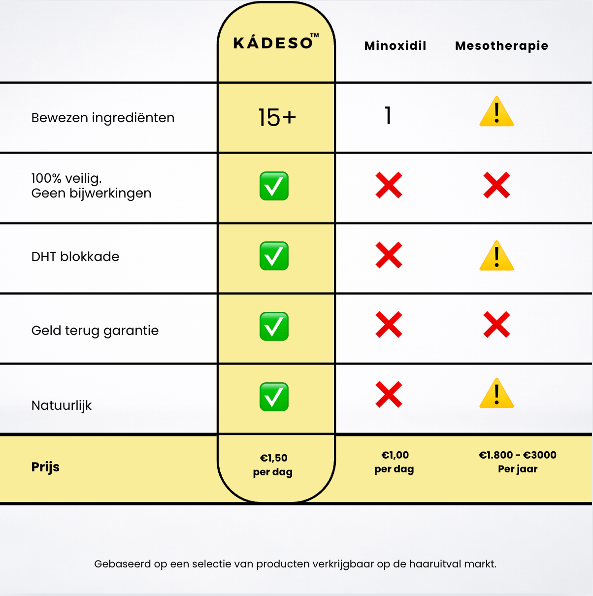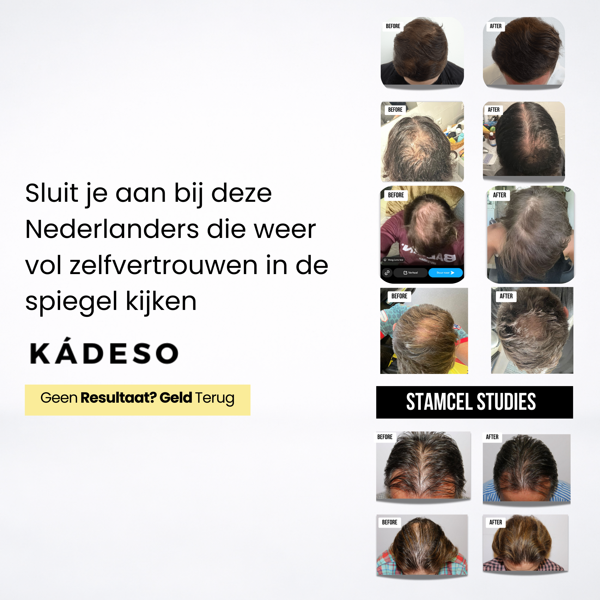 De gepatenteerde stamcellen en natuurlijke DHT-blokkers van KÁDESO helpen bij alle soorten haaruitval. Ze zorgen ervoor dat je haar weer dikker wordt, door je hoofdhuid sterker en gezonder te maken. Je hoeft het maar 30 seconden per dag te gebruiken.