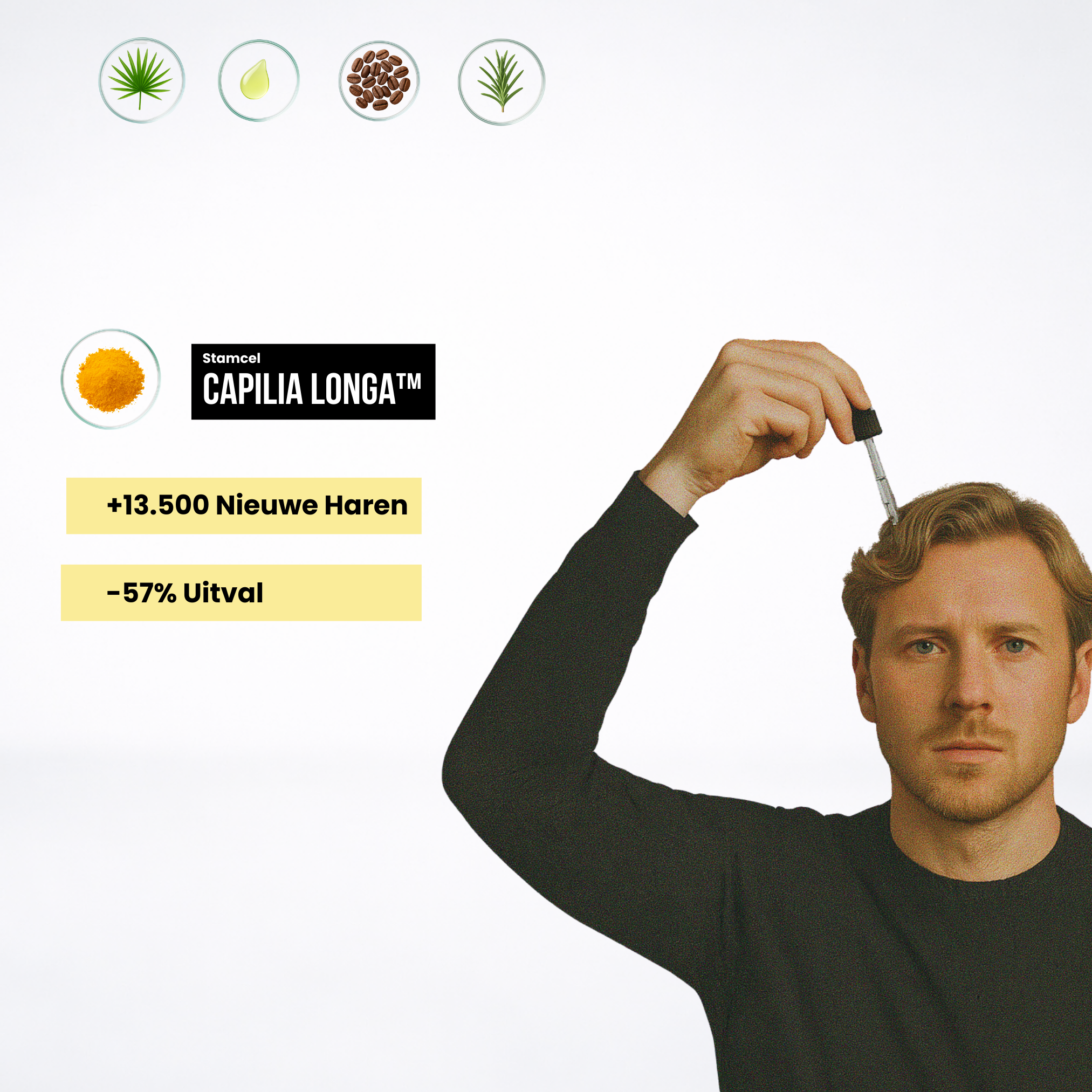 The Grow Serum™ – onze krachtigste formule met Capilia Longa™ stamcellen, natuurlijke DHT-blokkers en ingrediënten die de bloedcirculatie stimuleren.