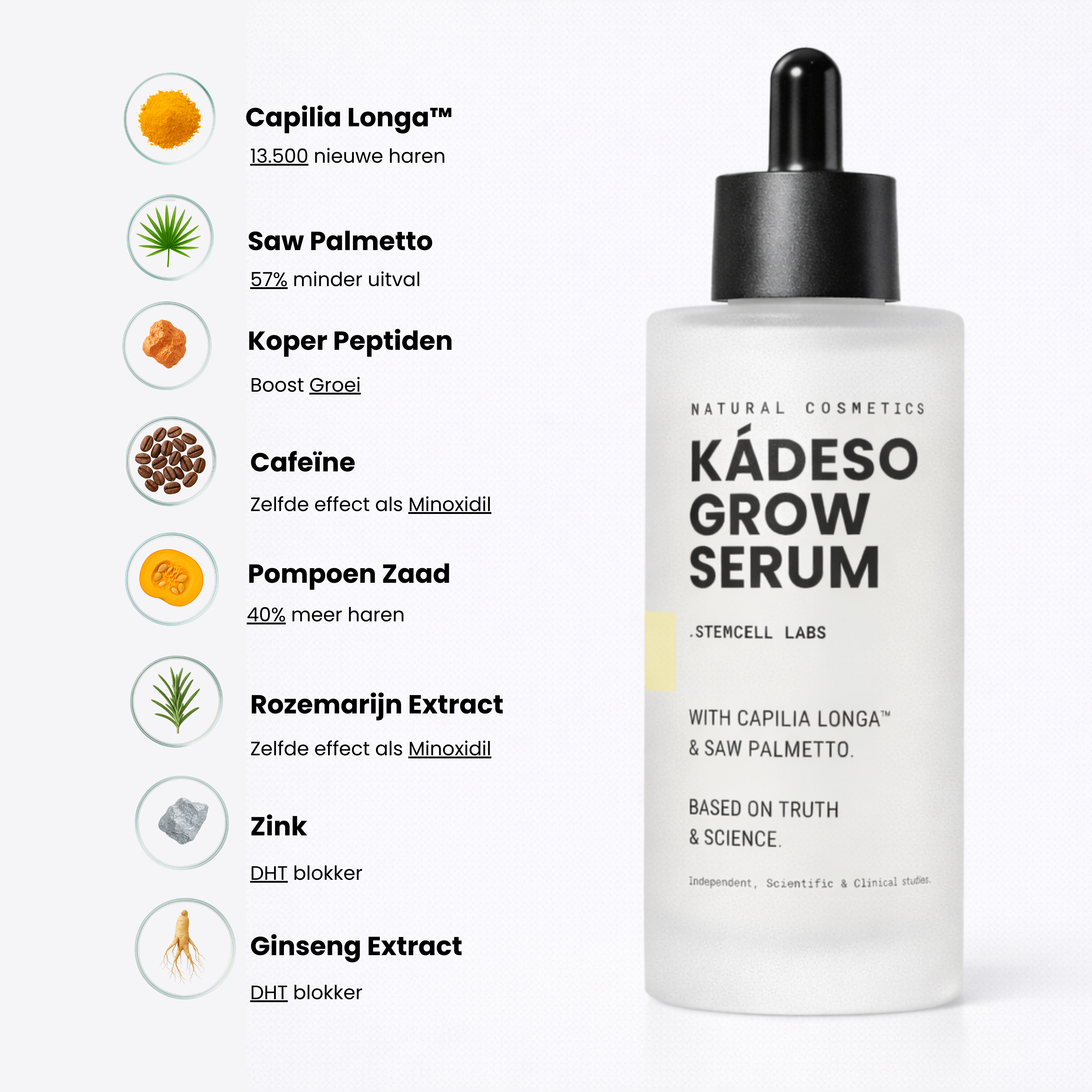 Wetenschappelijk onderbouwd in 25+ studies, met 6x DHT-blokkers en gepatenteerde stamceltechnologie.